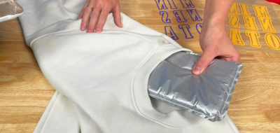 - Insert a pressing pillow inside the sleeve to create an even surface. This is especially helpful if your sleeve has a crease on the bottom.