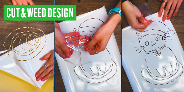1. Cut your design. Load your template material (sticky side up) and cut your rhinestone design using your cutter.