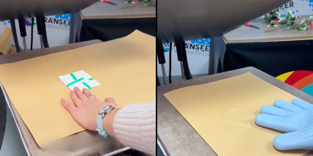 Start by securing your sublimation transfers to both sides of the blank using heat tape. Make sure they’re centered and taped down tightly — this keeps your design from shifting during pressing.